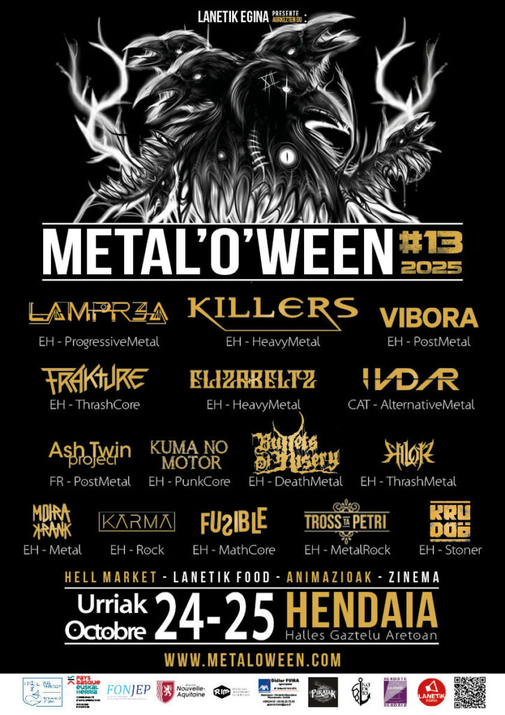 En 2022, regresamos a nuestras tierras natales para la décima edición aniversario. Un año de renovación y una nueva dimensión para Metal’o’Ween, que se convierte en un festival de dos días. El comienzo de una nueva aventura. Y nuevos encuentros con el festival Hellbona y el medio digital Herriko Burdina.